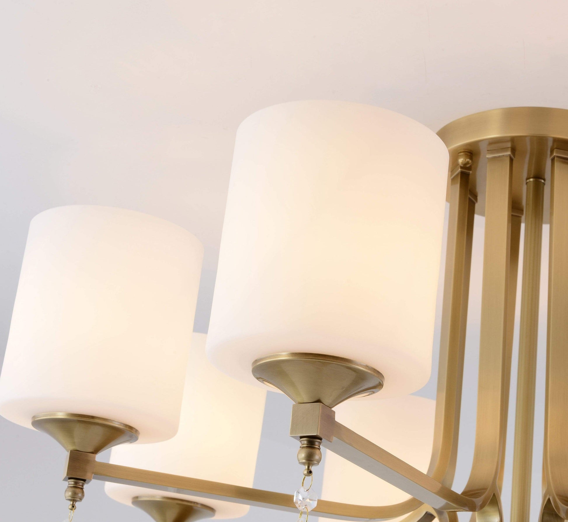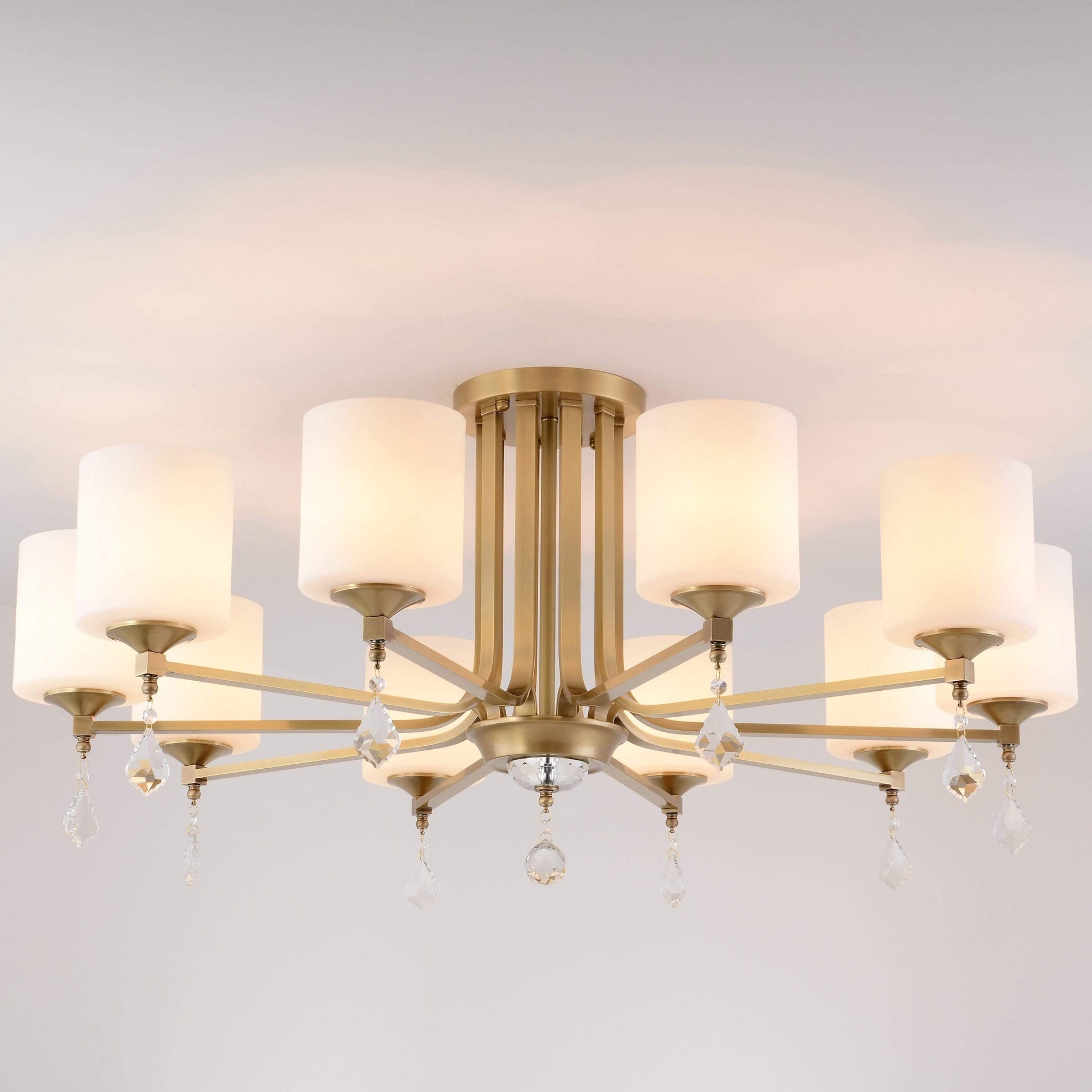 Elegant vintage-inspired 10 bulb chandelier. This beautiful chandelier features a metal frame accented with faceted acrylic beads and dangles. Use in any room of your home to add a glamorous feminine touch of light.