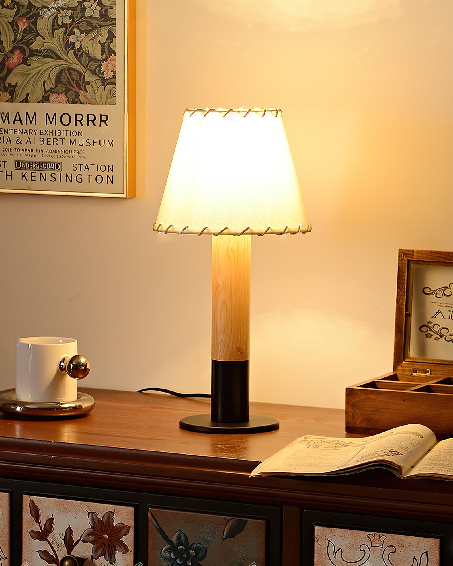 The Arbor Table Lamp combines the rustic charm of wood, the warmth of fabric, and the sleekness of metal to create a stylish and contemporary lighting piece. The natural wooden base provides a sturdy and earthy feel, while the black metal stand adds a modern twist. The fabric lampshade, delicately stitched with precision, emits a soft, warm glow, perfect for creating an inviting ambiance.