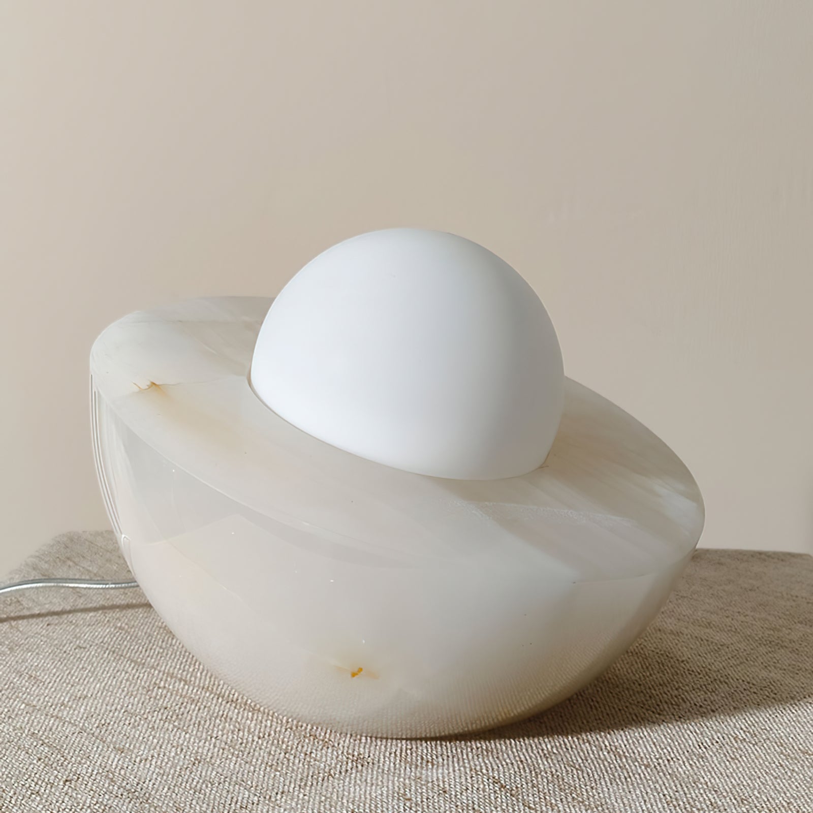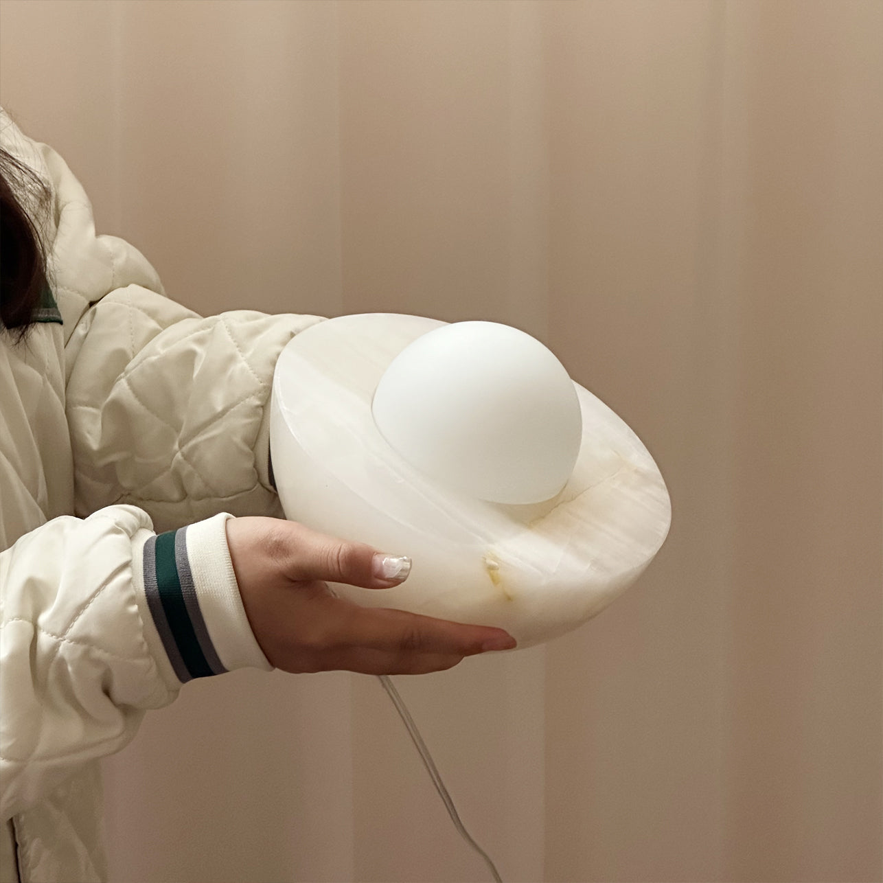 The Piccola Table Lamp is a minimalist masterpiece, combining the natural elegance of marble with the soft glow of frosted glass. Its sleek, sculptural form resembles a floating planet, with a smooth glass orb gently resting on the carved marble base. The harmonious blend of materials creates a soothing aesthetic, perfect for modern interiors that value simplicity and sophistication