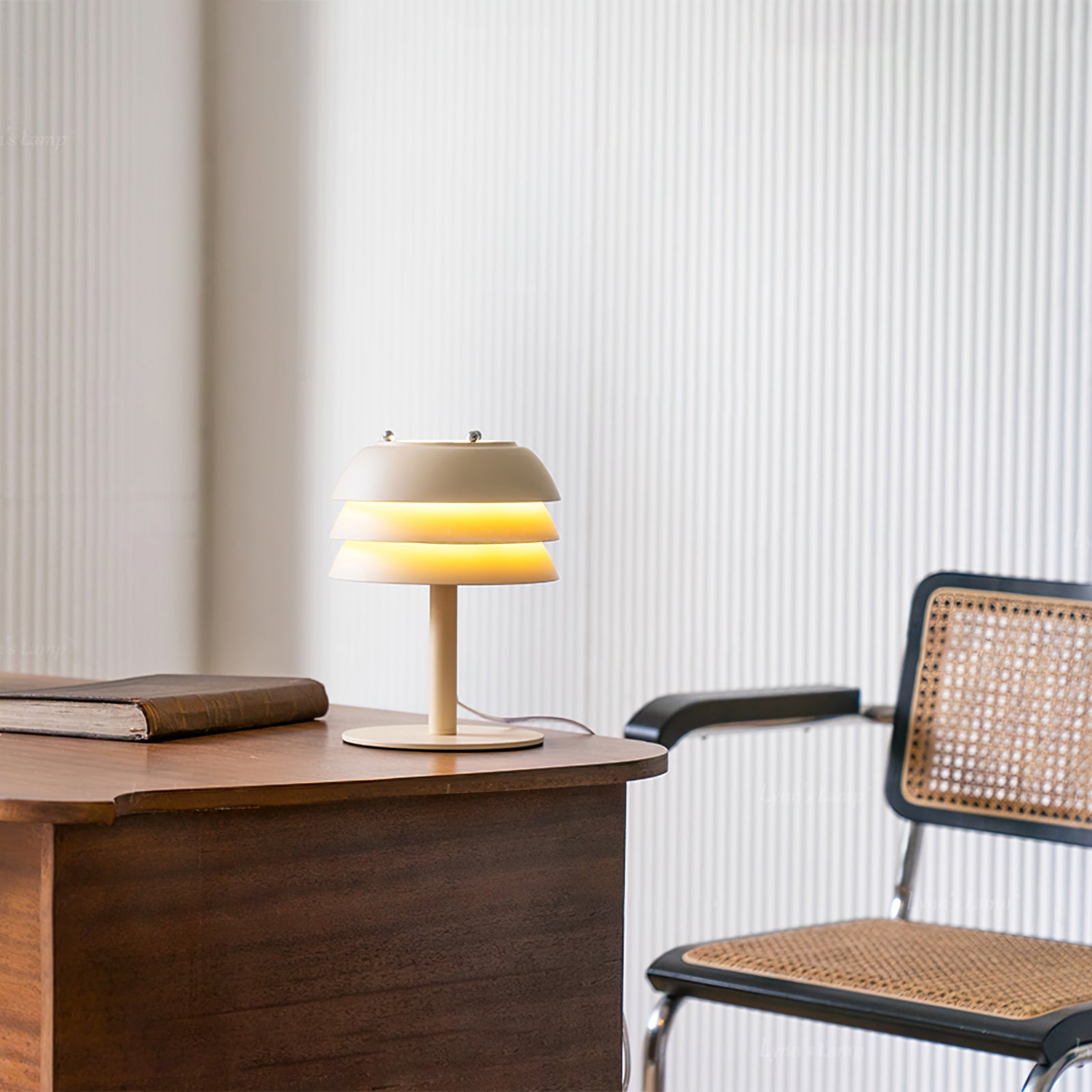 Elevate your workspace with the Valencia Table Lamp from Dekorfine. Crafted from durable metal, this stylish table lamp features a unique layered design that adds a touch of modern elegance to any room. The soft, warm light emitted through its tiers creates a cozy atmosphere perfect for reading or working.