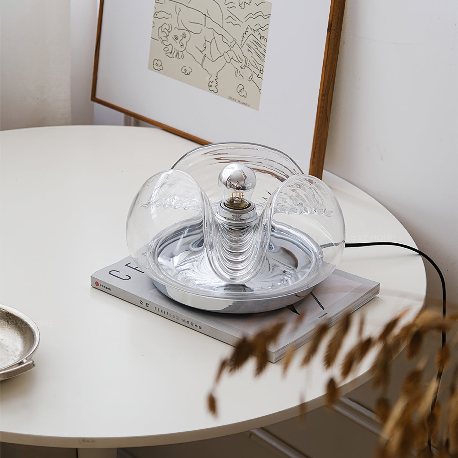 The Wave Koch Table Lamp provides a beautiful ambient light with a compact and modern design. Featuring a crisp clear shade and a polished chrome frame, this lamp is perfect for adding a touch of elegance to any space.